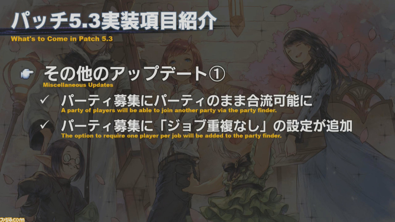 続いて、この日に発表されたパッチ5.3の新要素をそれぞれの項目に分けて紹介。箇条書きで記載したコメントは、すべて吉田氏によるものだ。