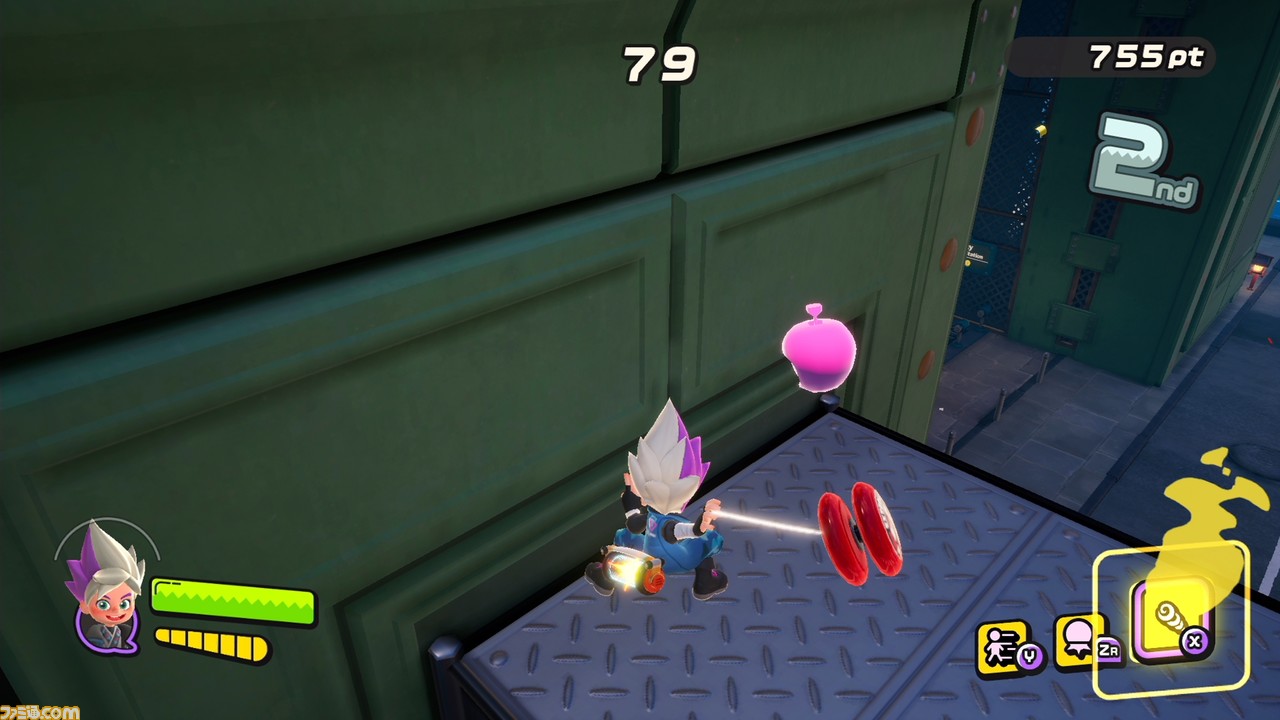 膨らませたガムがそのまま相手に向かって飛んでいくガムランチャーや、相手のほうにまっすぐ突進するスペシャル“トツゲキスラッシュ”、そしてガム忍術の“ニンジャトルネード”では範囲攻撃も可能と、かなり使い勝手がいい。