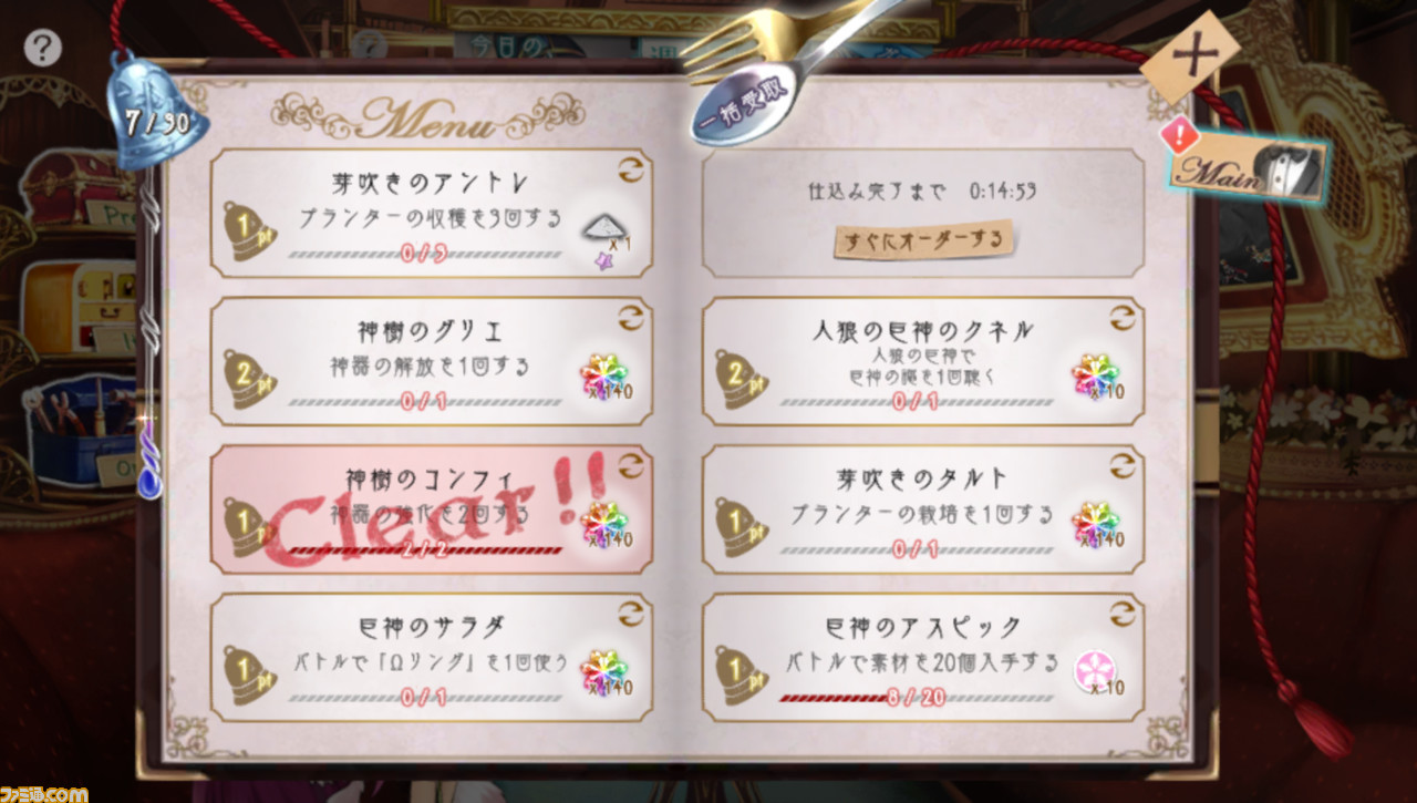 本作では、これまた謎の存在である緑色の妖精“モフル”たちが、これまで戦ったことがある巨神の素材を集めてくれる。プレイヤーが巨神と戦っていたり、あるいはログアウトしている間も進行する、いわゆる“放置”の要素だ。レアな素材もしっかり集めてきてくれたりするので侮れない。