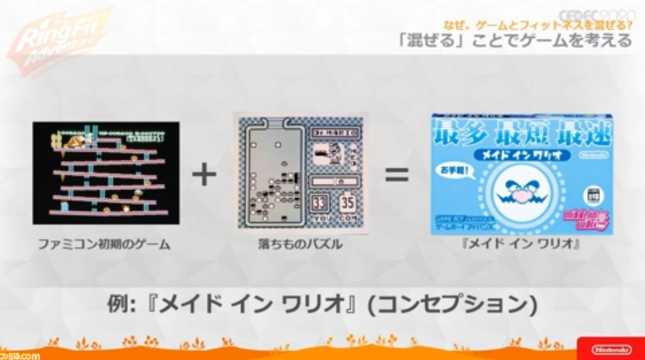 本セッションでは、『リングフィット アドベンチャー』で実現された、ゲームとフィットネスという対極に位置する要素がいかにしてひとつの作品としてまとめ上げられたか、その発想の誕生から完成までの苦労と工夫が発表された。
