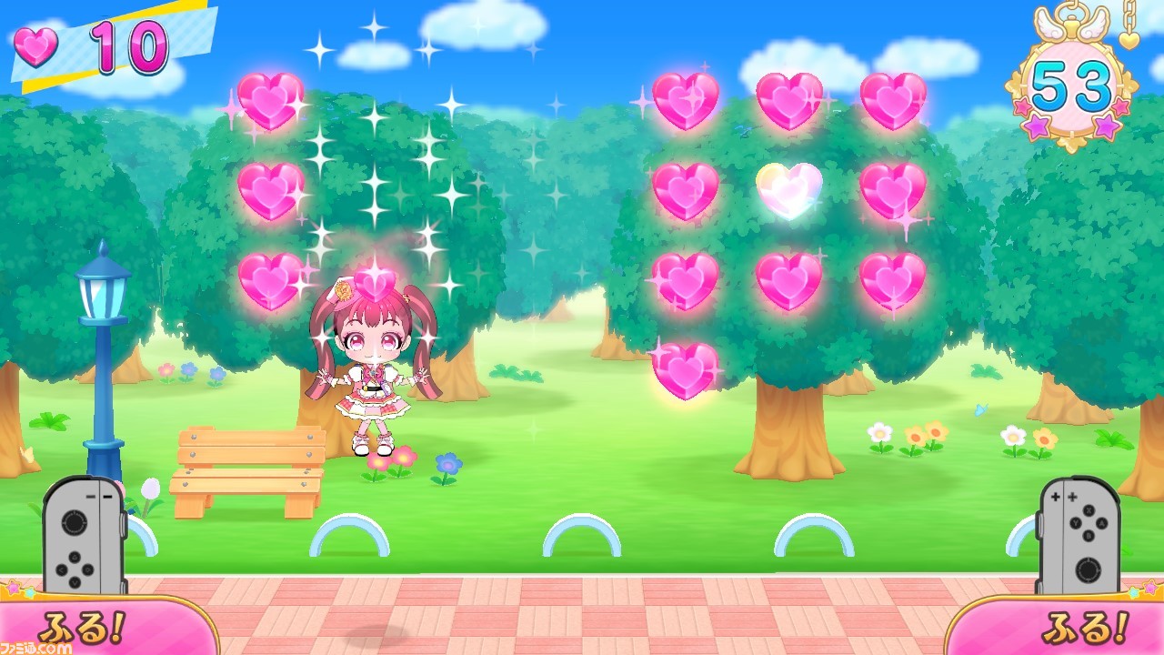 ラブパトリーナに変身したら、事件現場に急行するためにジャンプアクションをしたり、画面中に散らばったハートを集めたり、逃げるラブゼーロ(悪者キャラ)を追いかけて捕まえたり、11種類のミニゲームで大活躍! これらのミニゲームは、すべてJoy-Conを振る簡単操作でプレイできます。