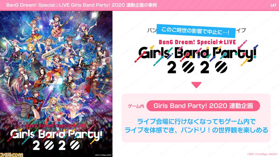 連動企画では、ライブ会場に行く人、行かない人問わず、ゲーム内でライブを体感でき、『バンドリ!』の世界観を楽しめるということが目的であったが、新型コロナウイルス感染症の影響により、リアルライブは中止。