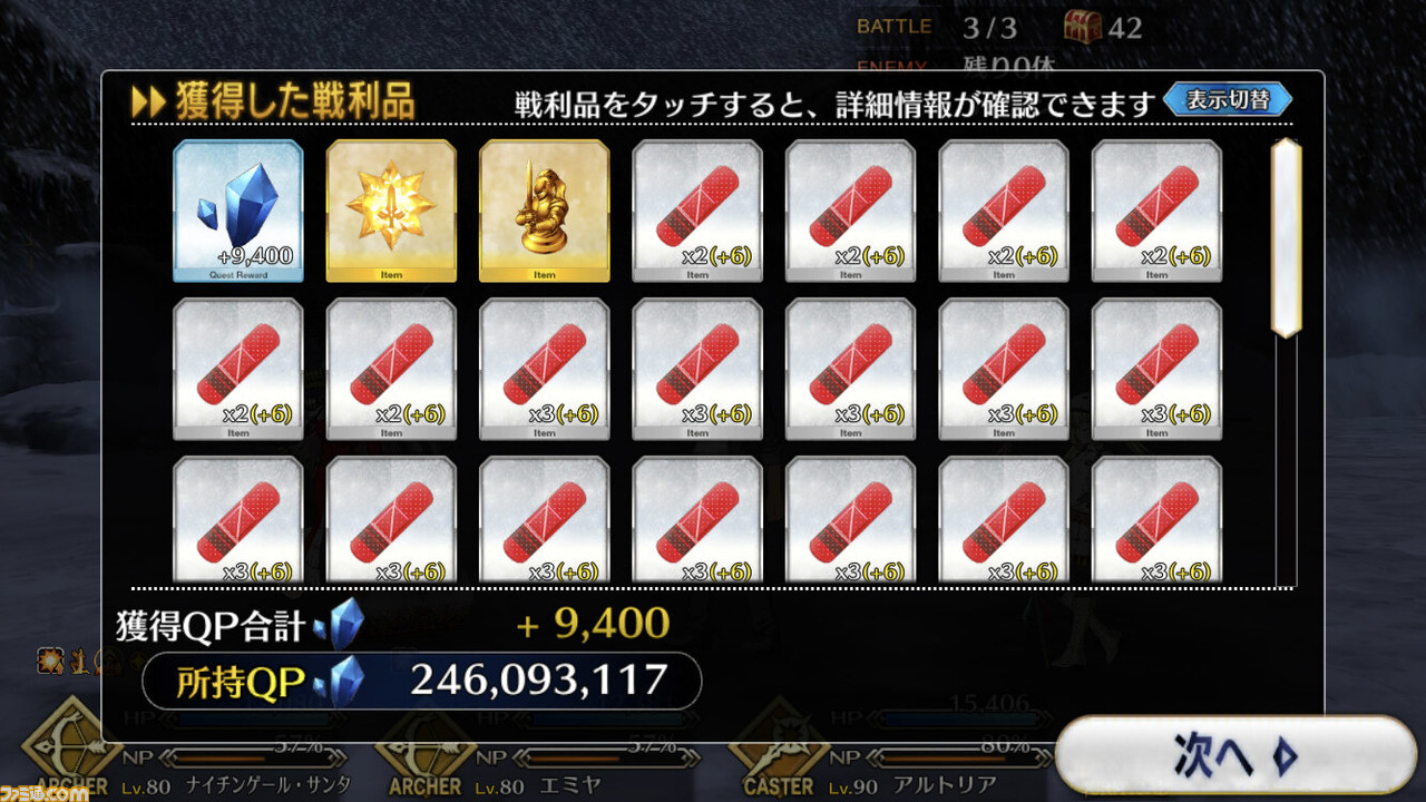 - エミヤの宝具+エミヤ&ロビンフッドのクリティカル攻撃で突破