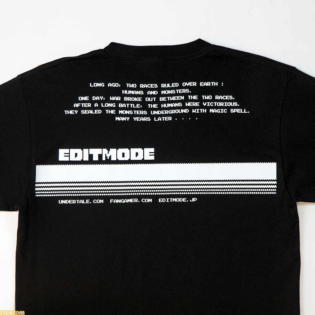 商品説明:任天堂のゲームをモチーフにしたアパレルグッズを展開する「EDITMODE」さんと『UNDERTALE』が奇跡のコラボ!懐かしのファミコン「カセットライン」がモチーフのデザインに『UNDERTALE』の世界観を見事にマッチさせた「EDITMODE」さんこだわりのファングッズです。色違いの「EDITMODE ver.」も同時発売!特製ステッカーのおまけ付き。