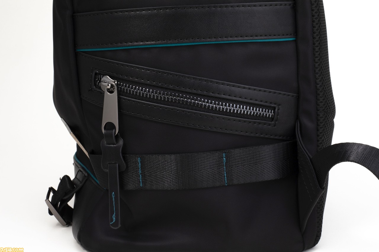 ノートPCが収まる背面ポケットや、ショルダーベルトにもポケットが付いていたりと、多機能なところもポイント。また、全体を包む高級感のある合皮や、ファスナーがすべて黒メッキが、『十三機兵防衛圏』の持つ重厚感をイメージできるバックパックとなっている。
