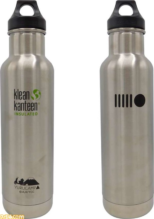 『ゆるキャン△』アニメに登場した志摩リンのボトルをモチーフに制作した、アウトドアブランド「クリーンカンティーン」とのコラボ商品です! 裏面には劇中アイテムと同じマークが入っています。