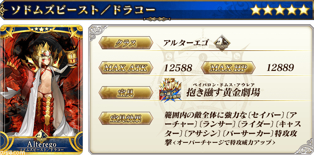 “収束特異点 背徳果実都市 リリムハーロット”の最終戦をクリアーすることで、星5サーヴァント“ソドムズビースト/ドラコー(アルターエゴ)”を入手できる。
