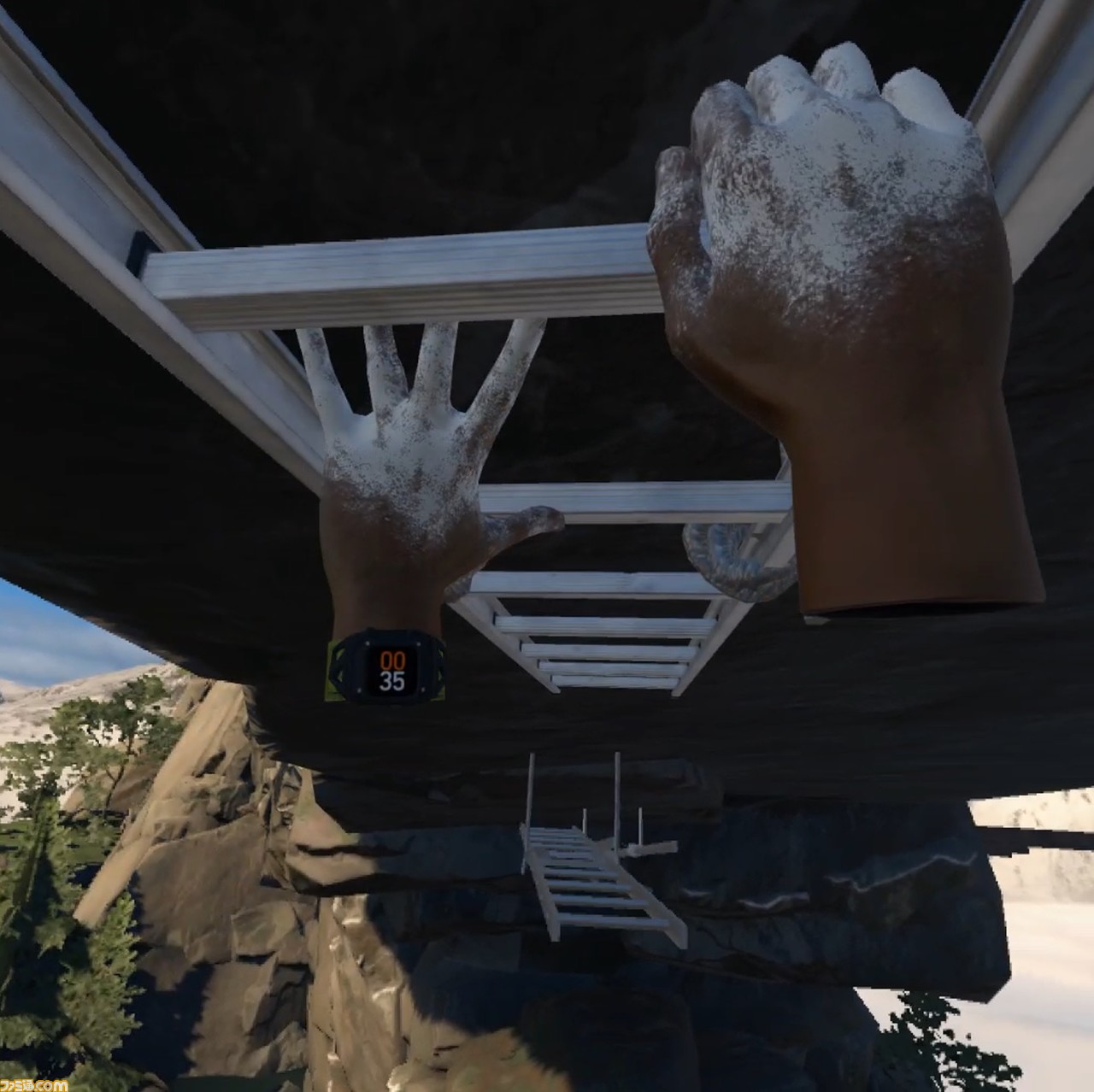 本作の特徴は何といっても、命綱なし、自分の手だけを頼りに断崖絶壁の山などを登っていくクライミングだ。プレイヤーはコントローラーを駆使して崖や足場を掴み、数少ない道を辿ってゴールを目指していくことになる。