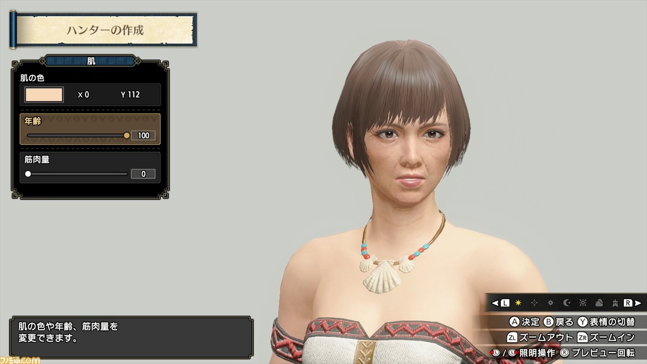 ハンター生活を始める前に、まず行わなければならないこと。そう、キャラクタークリエイションだ。『モンスターハンター:ワールド』のように顔の“しわ”や筋肉の付きかたなどかなり細かく作り込める仕様で、アレをこうしてそうしてとやっているうちに結構な時間を費やしてしまうことになった(いつも通り)。