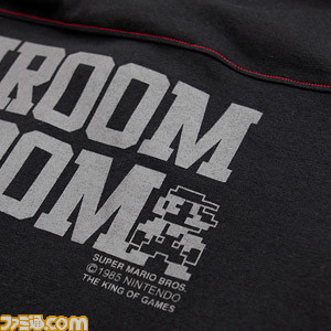 フロントプリントにはキノコ王国こと“マッシュルームキングダム”と“マリオ”を配置。バックプリントにはマリオ発売年の“85”がプリントされている。