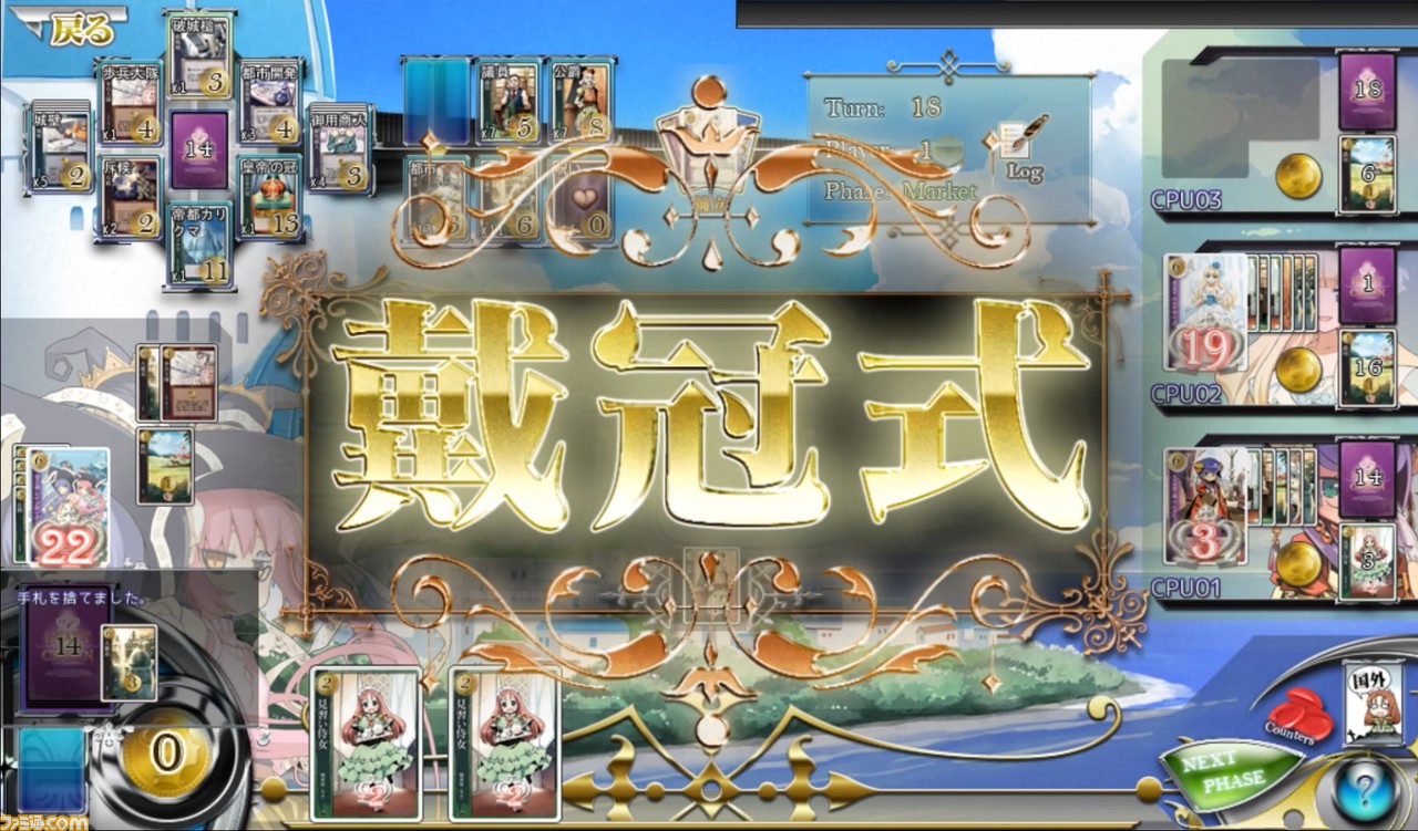 継承点が20点を超えた時点で戴冠式を宣言できる。その後1ターン以内にほかのプレイヤーが戴冠式を宣言しなかった場合、即位となりゲームに勝利する。20点になるよう計算して継承権カードを購入するのがポイント。