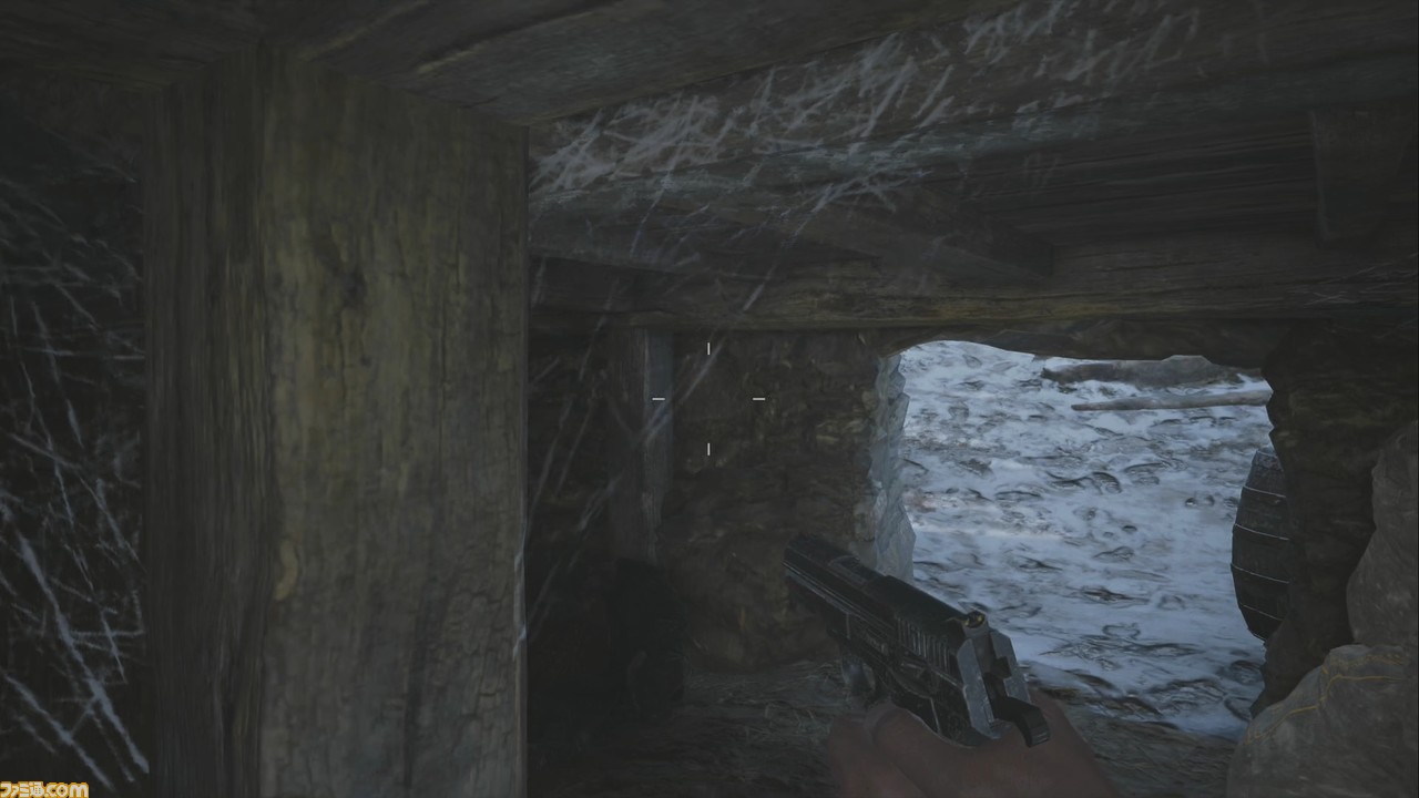 ショットガンが置かれている建物から床下に逃げて隠れる