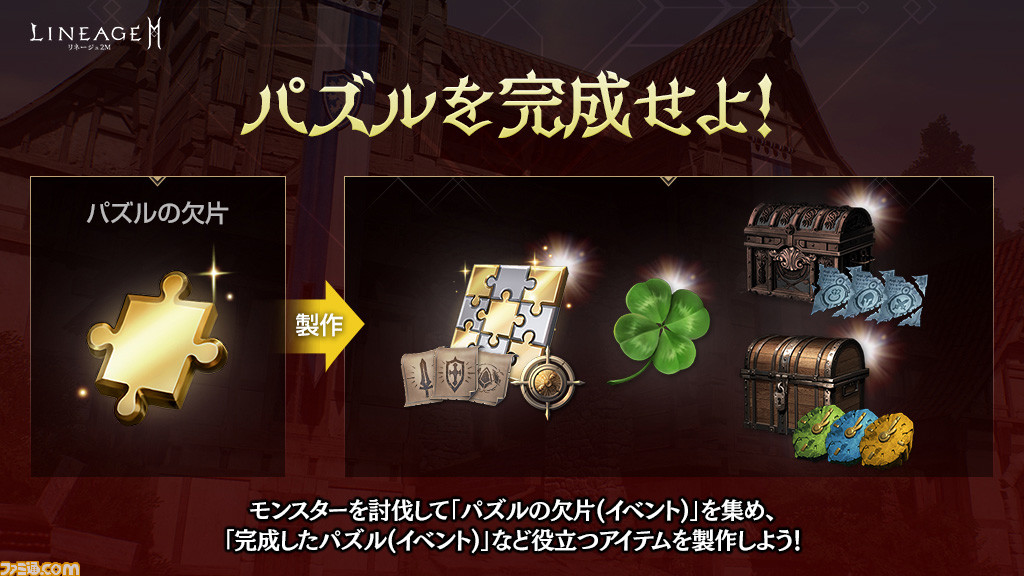 さらにイベント期間中、毎日昼12 時に「パズルの欠片(イベント)」などをゲーム内郵便で配布いたします。 パズルを完成させ、冒険に役立つアイテムを手に入れましょう!