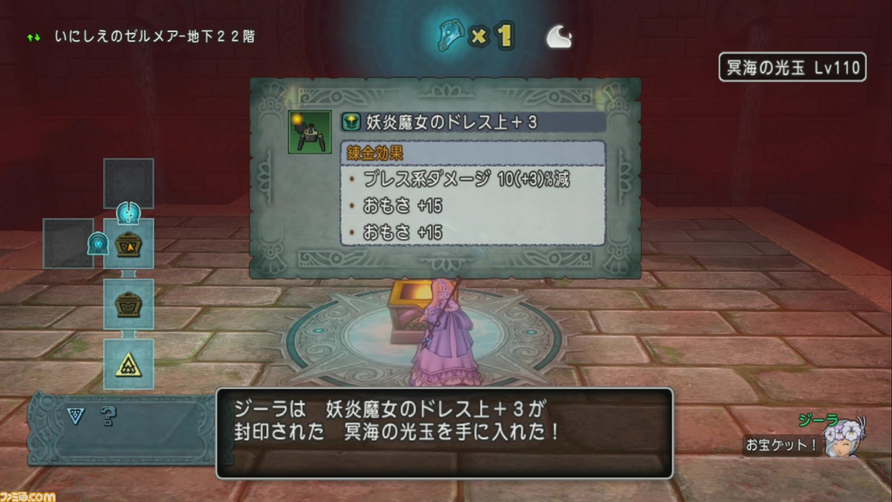 これは浅い階でレベルの高い防具を集めるわけではなく、防具を入手しやすい深層でも低レベル防具を集められるというのがおもな使いかたなのかな? まぁ筆者はレベル110防具狙いなので、とくに気にせず地下20階へ。