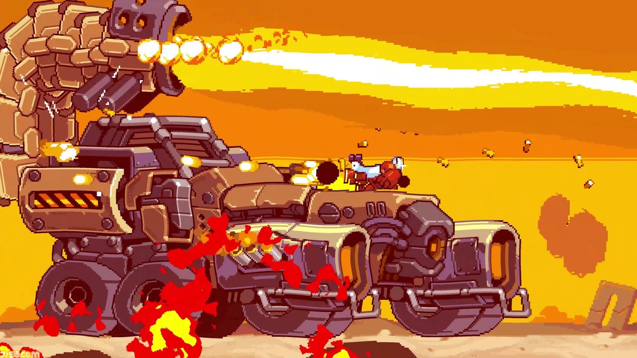 『マイティ・グース』は、プレイヤーのスキル、タイミング、反射神経が試されるガンアクションがプレイの基本である、シンプルなアクションシューティングゲームです。古き良きアーケードゲームをベースとしつつ、様々な武器や兵器、アップグレードなど、多くの要素が詰まったぺースの速いラン&ガンシューターで、『メタルスラッグ』や『魂斗羅』といった作品に影響を受けています。