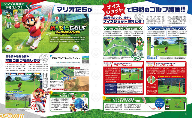 シンプル操作で白熱のゴルフ勝負を楽しめる本作。ソフトを買ってすぐに役立つナイスショットを打つテクニックをはじめ、『マリオ』シリーズならではのゴルフが楽しめる1人用モ-ド「マリオ世界を冒険」の流れを詳しく紹介しています。