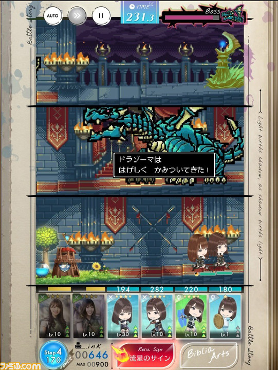 バトルパートは、タイミングよくメンバーを出撃させ、スキルを駆使して戦っていくタワーディフェンスバトルとなっており、縦画面で片手で遊べるのが特徴。また、鎧や甲冑、近未来のバトルスーツなどに身を包んだ、カッコいい日向坂46メンバーの姿を楽しめるのも魅力のひとつだ。