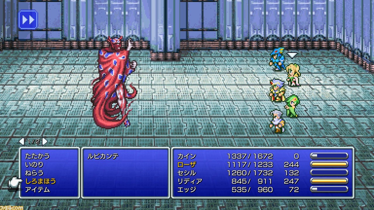 “ピクセルリマスター”シリーズは、事前に選択したコマンドをくり返しながら倍速で戦ってくれる、オートバトルに対応している。これが『FFIV』とマッチしており、“たたかう”だけでサクサクと進めるのが非常に便利だった。