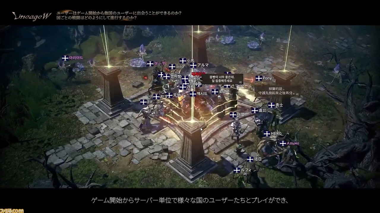 今回の発表会では、ユーザーから寄せられた質問に『リネージュW』グループ長のイ・ソング氏が答える形で進行。サービスは最初に韓国、台湾、日本、東南アジア諸国、アラブ、ロシアをひとつのエリアとしてサービス開始し、その後に北米、ヨーロッパ、南米諸国をふたつ目のサービスエリアとして展開していく。なお、あくまで現状の予定であり、エリアや国については変更する可能性もある。