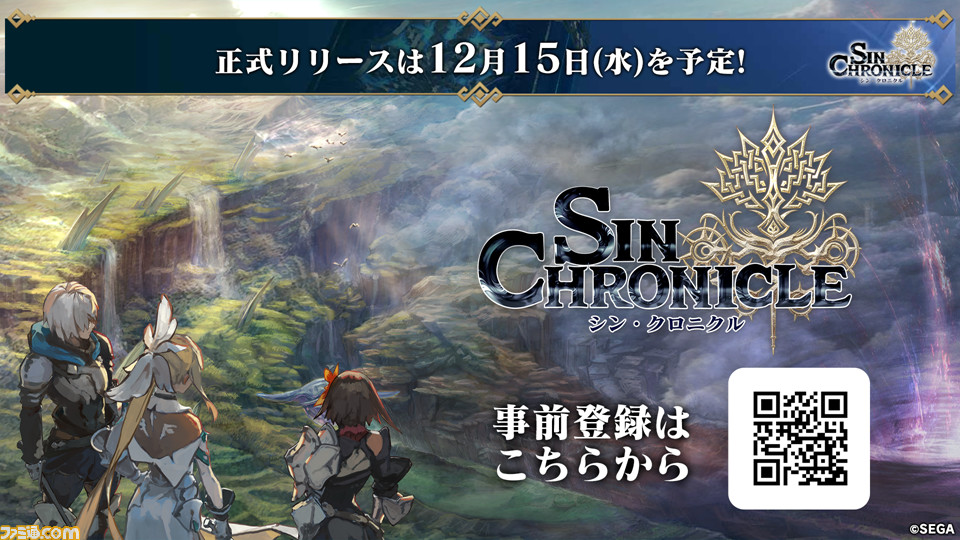 株式会社セガは、2,500万ダウンロードを突破した『チェインクロニクル』開発チームが手掛ける新作RPG『シン・クロニクル』を、2021年12月15日(水)に配信することを決定しました。また、配信に先駆けた事前登録と、クローズドβテストの参加募集を開始します。