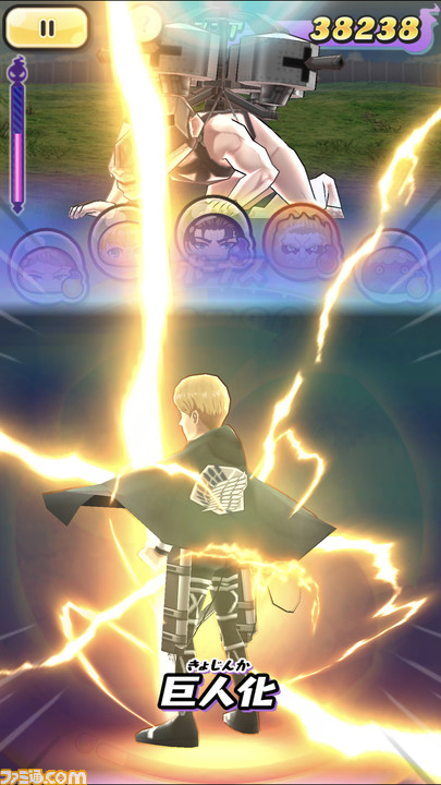 ぷにを消すことで、各ぷにのわざゲージが溜まっていき、最大になるとド派手演出とともに強力なひっさつわざを放てる! その効果は、大量のぷにを一気に消したり、同じぷにを揃えたり、はたまた攻撃力をあげたり、敵の邪魔をしたり……とキャラクターによって十人十色。『進撃の巨人』キャラクターのひっさつわざは“巨人化”などパワフルなものばかりだ。