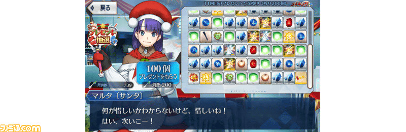 ※★4(SR)マルタ〔サンタ〕を正式加入させるためのセイントグラフの交換には、プレゼント抽選で獲得可能な聖女見習いの交換券が必要。