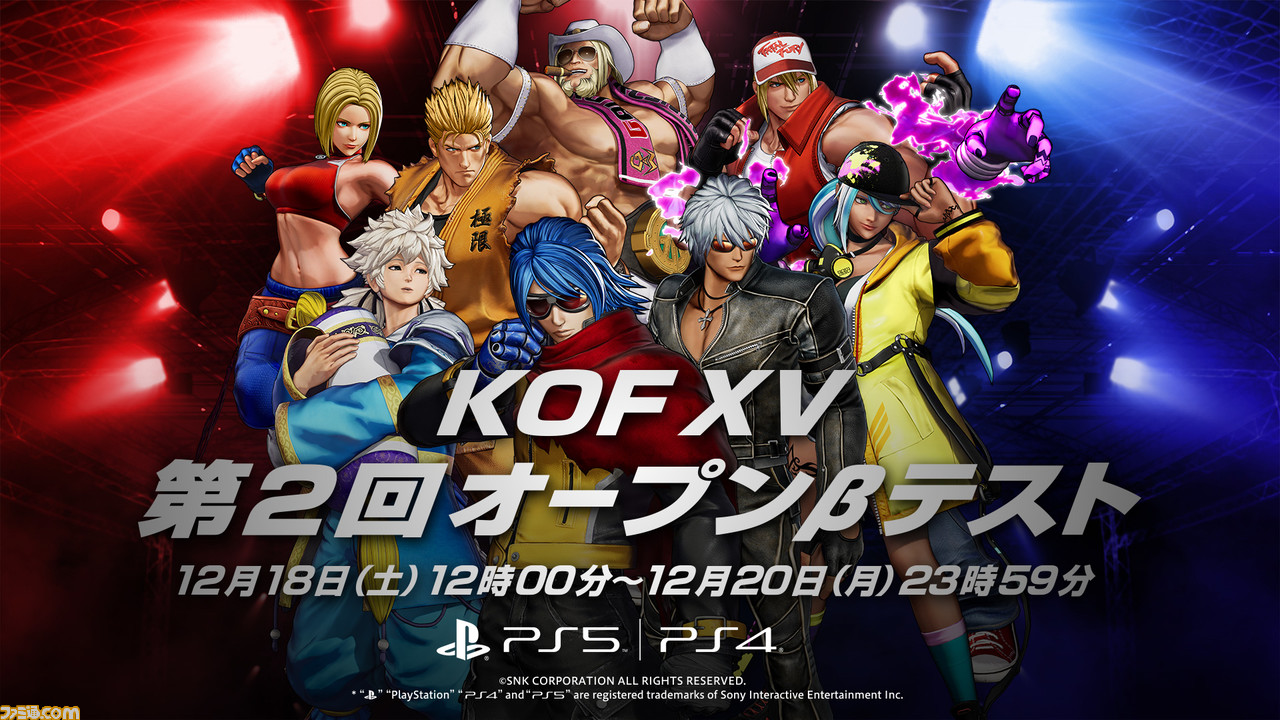 株式会社SNK (本社:大阪府吹田市、代表取締役社長 CEO:松原 健二)は、 新作対戦格闘ゲーム『THE KING OF FIGHTERS XV(KOF XV)』の第2回オープンβテストを2021年12月18日(土)12時から12月20日(月)23時59分まで、PlayStation5とPlayStation4で実施することをお知らせいたします。