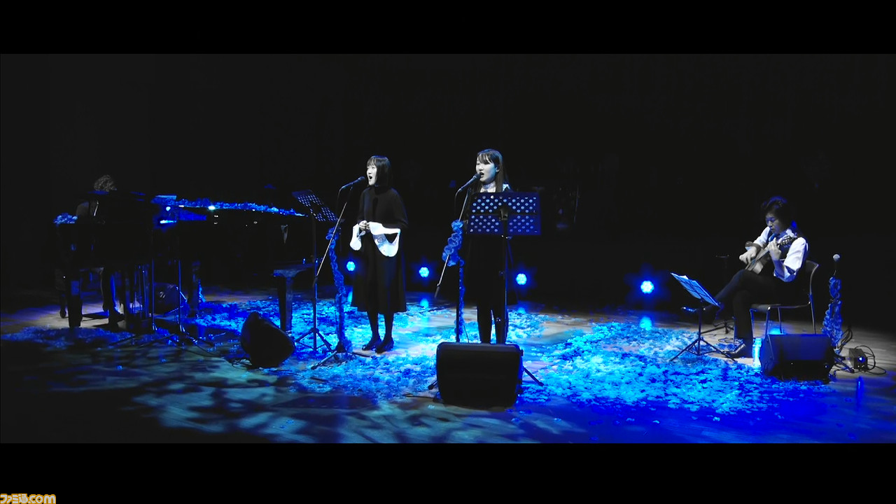 ミニコンサートの曲は、どの曲もゲーム本編とは違うアレンジで、ボーカルふたり、ピアノ、そして今回のコンサートアレンジのポイントともいえるアコースティックギターというシンプルな構成ゆえに、それぞれの存在感も際立っており、生演奏ならでの聴き応え。演奏された曲は7曲。テーマ曲、ガチャ曲、戦闘曲など、プレイヤーなら耳馴染みのある曲ばかりでドップリと『リィンカネ』の世界に浸れるコンサートとなっていた。