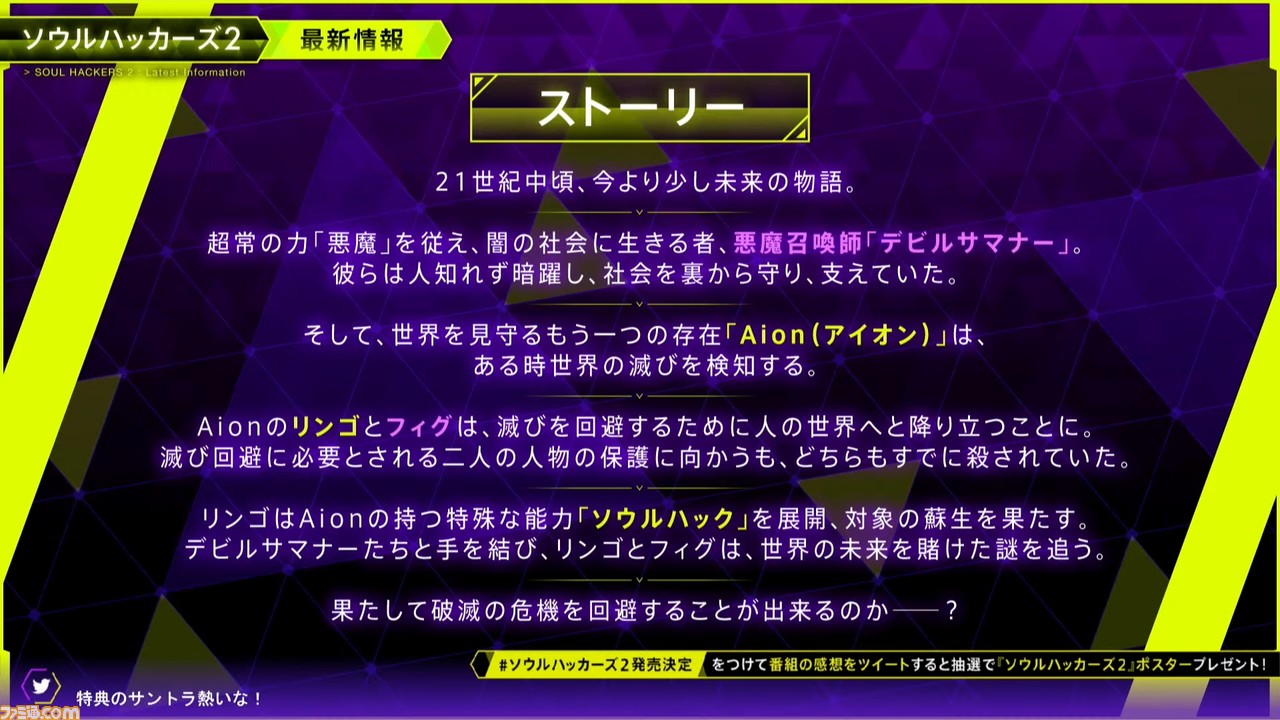 アトラスは『真・女神転生』シリーズのスピンオフ作品『デビルサマナーソウルハッカーズ』の新作『ソウルハッカーズ2』を、プレイステーション5、プレイステーション4、Xbox Series X|S、Xbox One、Windows、Steamにて2022年8月25日に発売することを発表。