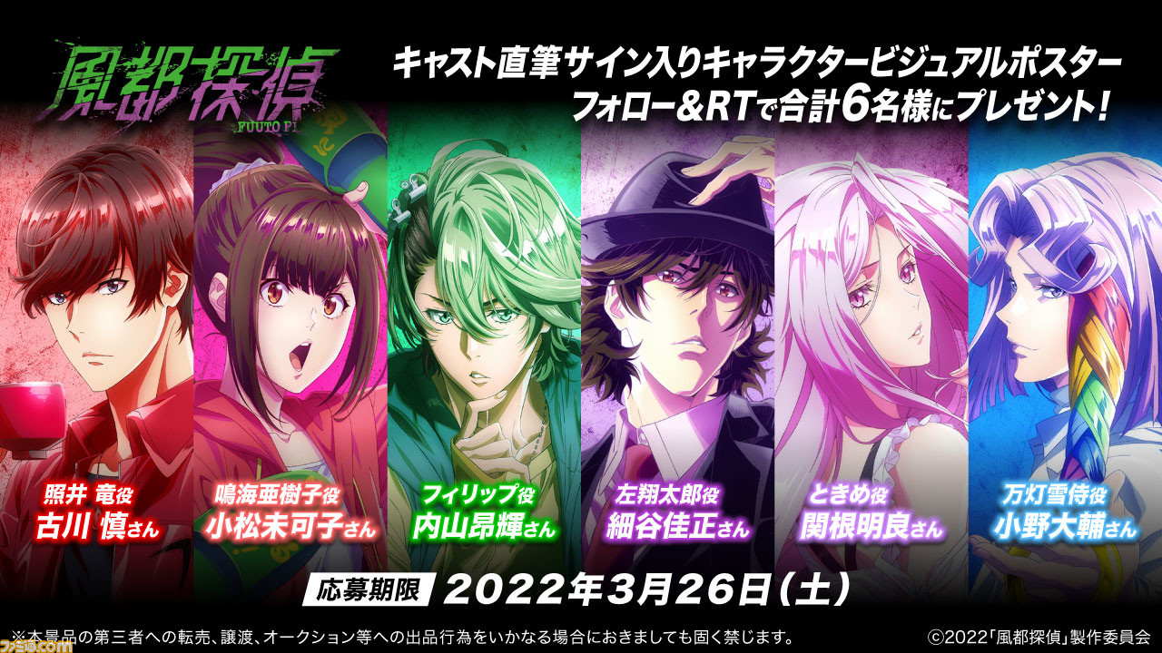 さらにこの機会に、アニメ『風都探偵』公式Twitterを開設。開設を記念して、キャストサイン入りポスターがあたるフォロー&リツイートキャンペーンを開催します。