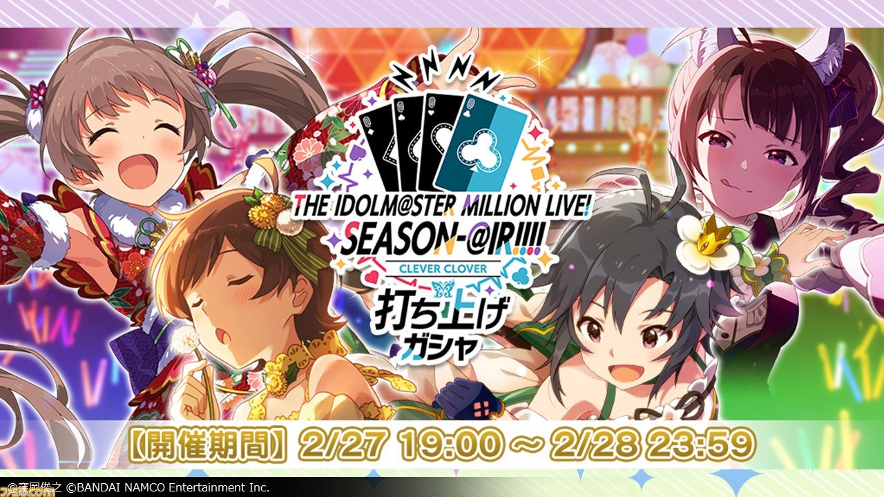 THE IDOLM@STER MILLION LIVE! SEASON-@IR!!!! ~CLEVER CLOVER~ 打ち上げガシャ開催!1回目は無料!