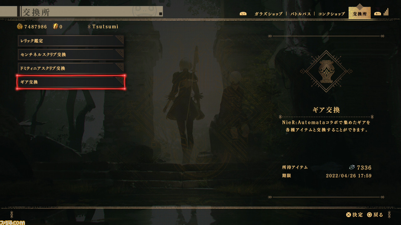 コラボクエストで手に入るギアでアイテムを交換しよう