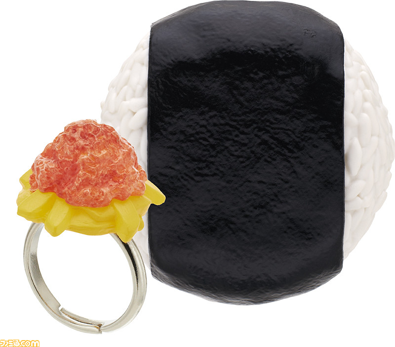 本商品は、美味しそうなおにぎり型ケースに具材付きの指輪が入った1品。今回は鮭といくら、赤飯、トロたく、うなぎめしなど贅沢な変わり種のおにぎり型ケースに、具材付きの指輪が初の5種で展開。