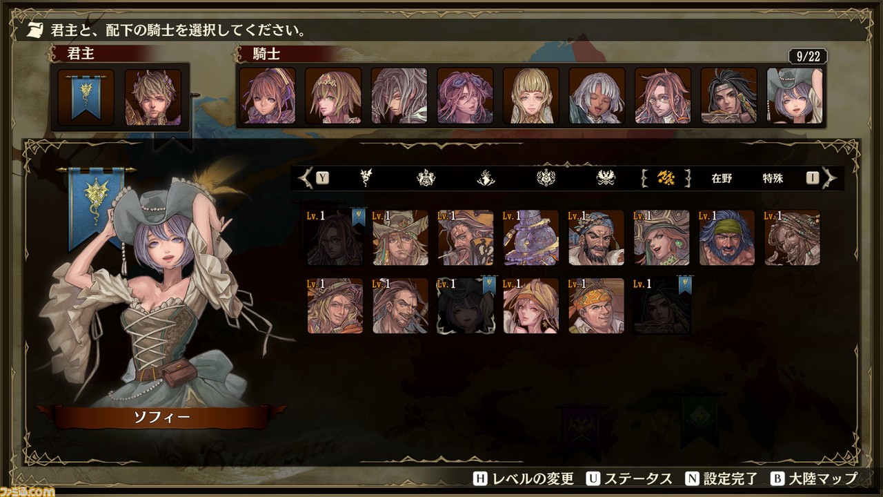 自勢力、敵勢力の配下騎士や初期レベルを自由に設定できます。(最大騎士数は初期拠点数に依存)