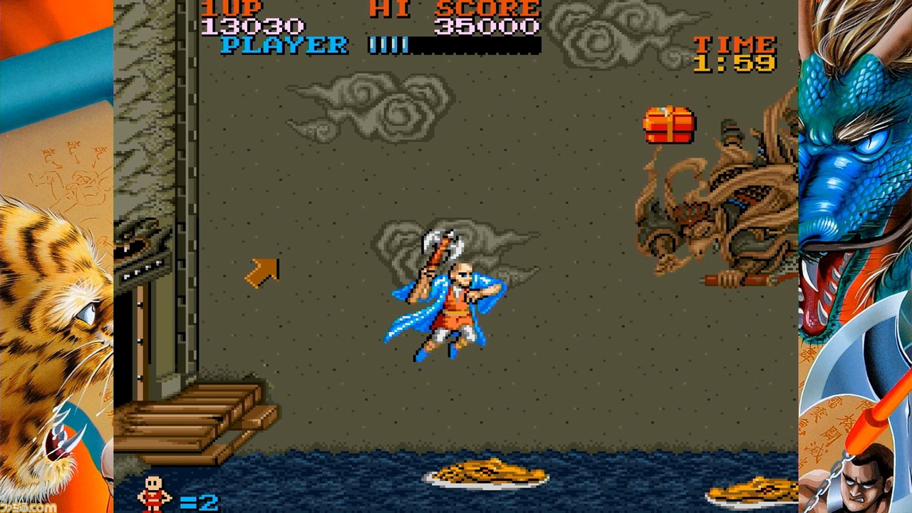 1987年稼動のアクションゲーム。王林寺拳法の使い手である李王を操作し、悪の拳法家・龍拳王にさらわれた子どもたちを救い出すために戦いをくり広げる。当時のカプコンらしい硬派な世界観で、いくつかの武器や拳法を駆使して敵を倒して進んでいく。天女の衣を装備した空中浮遊ステージなども注目のポイント。