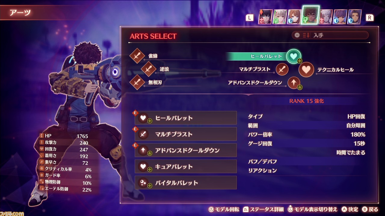 - ヒーラー:回復力、回復アーツの回復量、自身のヘイトが下がるもの