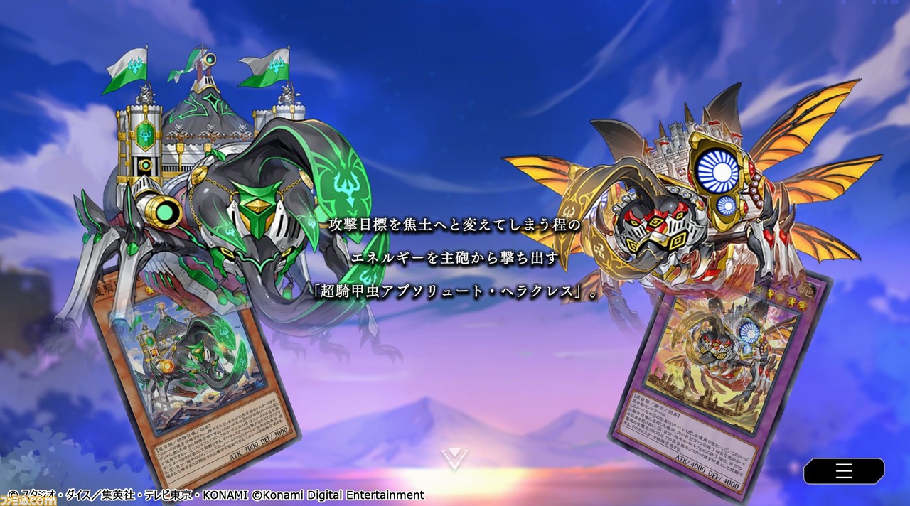 遊戯王オフィシャルカードゲームデュエルモンスターズ(以下、遊戯王OCG)で未実装のテーマ「騎甲虫(ビートルーパー)」がゲーム内に登場しました。「騎甲虫」は昆虫族モンスターの展開力を活かしてリンク・融合召喚を操るテーマです。また、罠カードを中心にLPを払って強力な効果を発揮する「ダイノルフィア」も登場。どちらも本日追加の新セレクションパック「インヴィンシブル・レイド」に封入されています。遊戯王OCGとは異なる環境でのデュエルをお楽しみください。