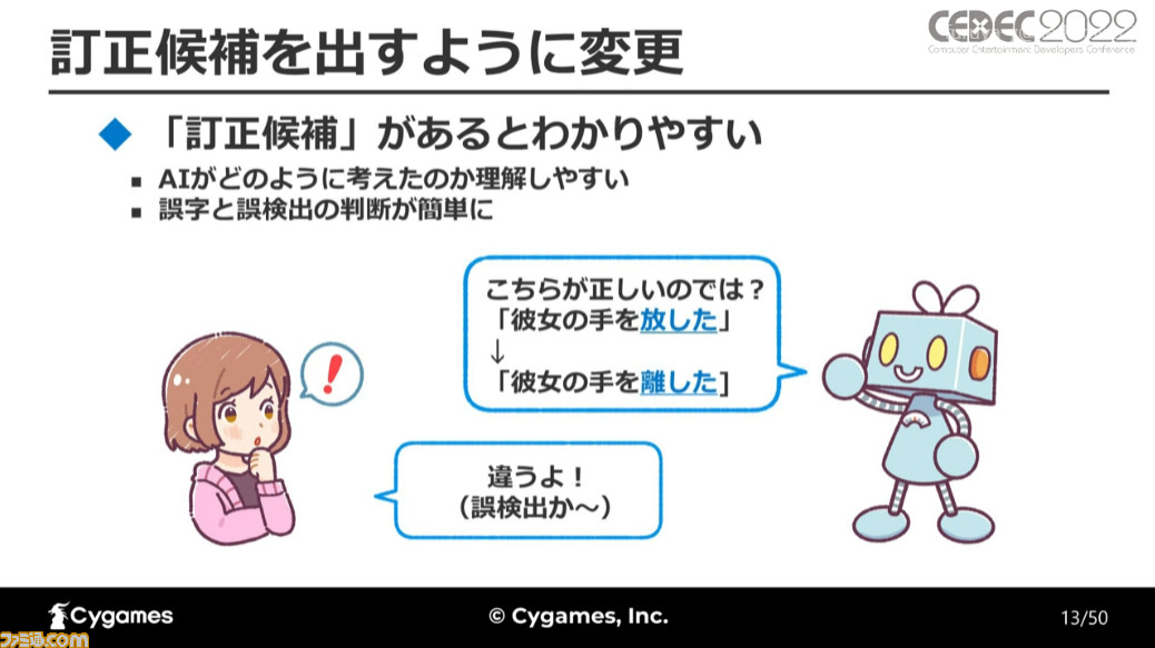 2022年8月23日から25日にかけての3日間にわたって開催された日本最大のコンピュータエンターテインメント開発者向けカンファレンス“CEDEC2022”。本稿では、最終日の8月25日に行われたセッション“AIによる自然言語処理を活用したゲームシナリオの誤字検出への取り組み”の内容をお届けする。