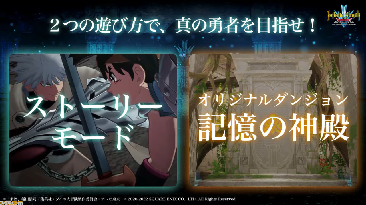 大きくわけてふたつのゲームモードが用意されており、番組では“ストーリーモード”と“記憶の神殿”の詳細が公開。さらに実機プレイでヒュンケルとのバトルも披露された。