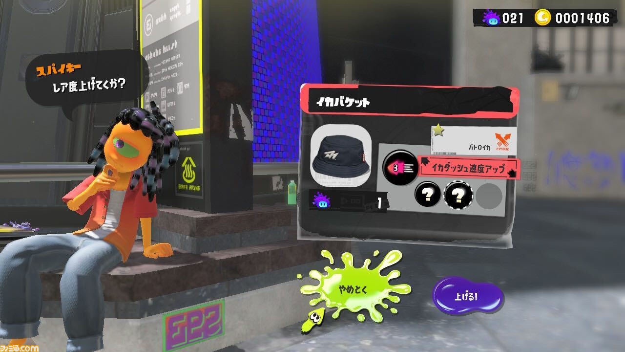 ただし、上げるレア度に応じて必要なスーパーサザエの量は増えていく。追加ギアパワーの枠が3つになるレア度★2までならスーパーサザエ1個につきレア度を1段階上げられるが、ギアの獲得経験値倍率が上がるレア度★3以降は必要なスーパーサザエの量が一気に上昇。