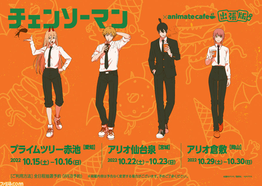 本コラボカフェは、藤本タツキ先生による漫画『チェンソーマン』のアニメ化を記念したもの。カフェは全日程抽選予約制とのことなので、気になる人は本日9月26日より開始された抽選予約に参加しよう。