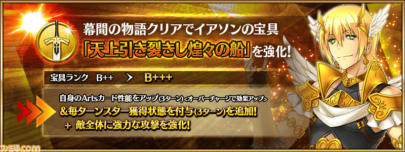 イアソンと超人オリオンの幕間の物語が恒常的に追加された。幕間の物語をクリアーするとイアソンの宝具が強化される。