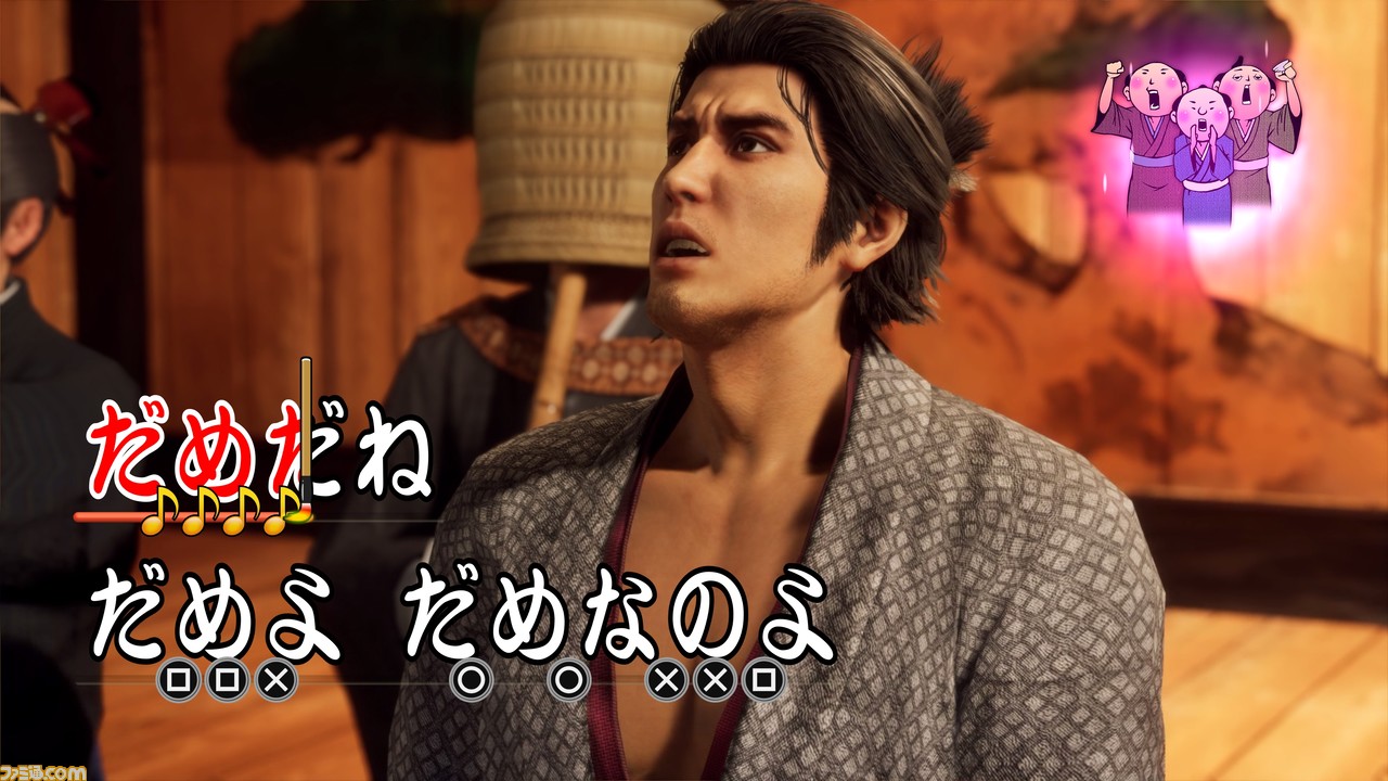 シリーズおなじみの人気スポット“カラオケ”は“歌声酒場”として登場。オリジナル版に収録されていた5曲に加えて、新たに『ばかみたい』の幕末アレンジバージョン、完全新曲『い・ち・ず・侍』の2曲も追加。みんなが酔いしれる歌や合いの手を披露してお客を盛り上げよう。