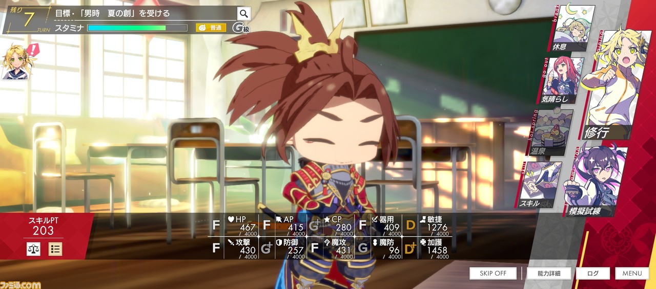 編成によって覚えられるスキルは変わるし、コマンドの選択次第で、パラメータを平均的に上げたり特定のパラメータに特化させることも可能。プレイヤーの好みに合わせて、自由度の高い育成が楽しめるのが大きなポイントだ。