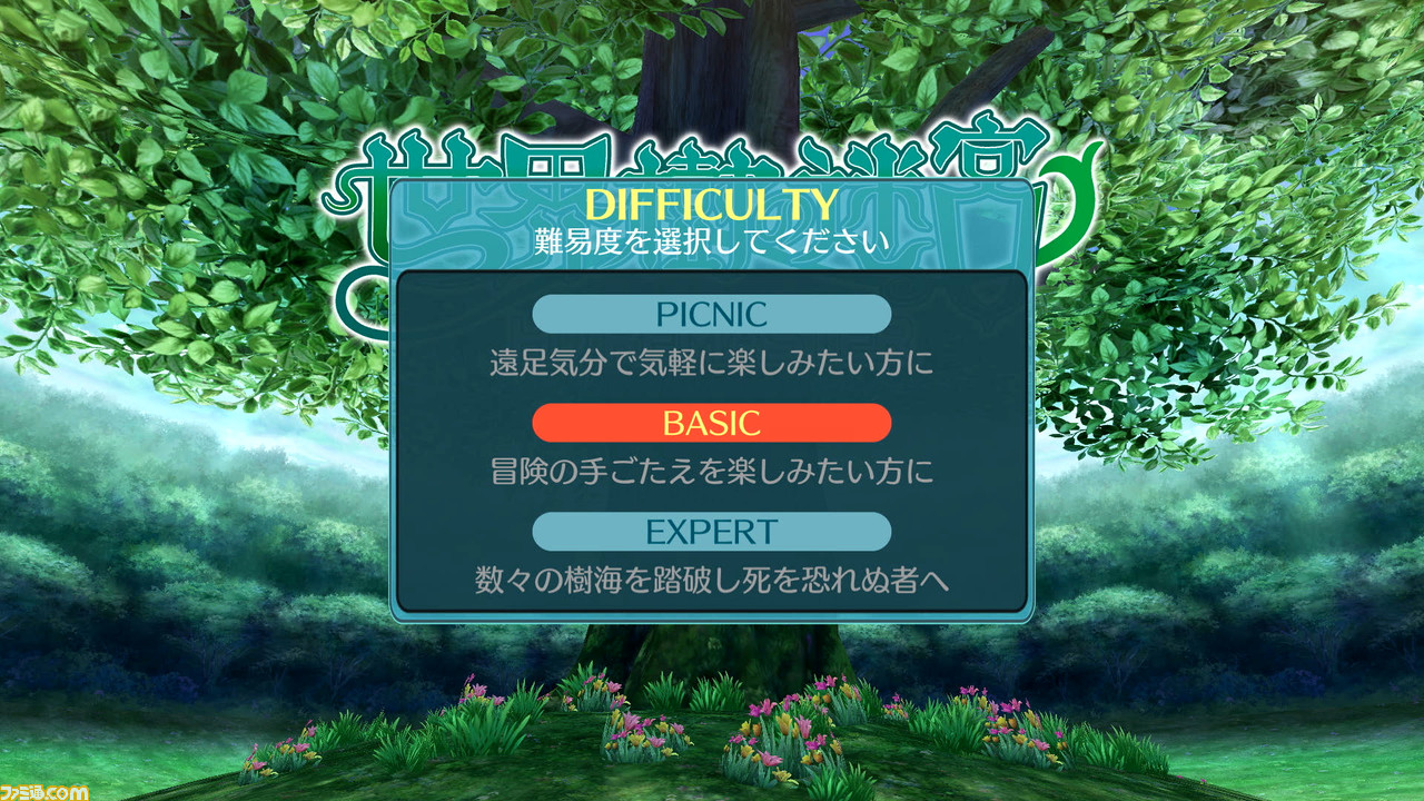 初心者も安心の「PICNIC」、カジュアルな冒険が楽しめる「BASIC」、熟練冒険者向け(オリジナル版の難易度)の「EXPERT」から選べる。プレイ中でもオプションから変更が可能なので、好きな難易度で冒険をしよう。