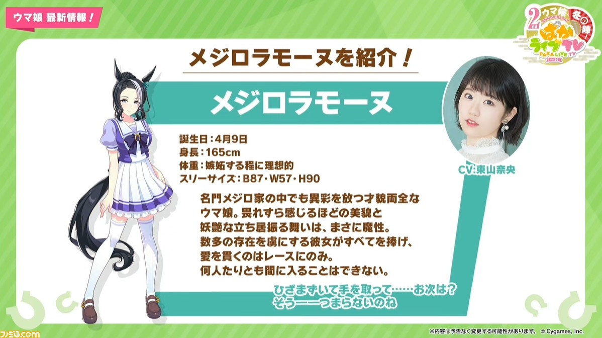 2021年2月24日にサービスが開始されてから、まもなく2周年を迎えるゲーム『ウマ娘』。今回の番組では、2ndアニバーサリーキャンペーン、新育成シナリオ“グランドマスターズ -継ぐ者達へ-”の続報、新しいウマ娘の情報などが発表される。本記事では、番組内で公開された情報を随時更新でお届け。