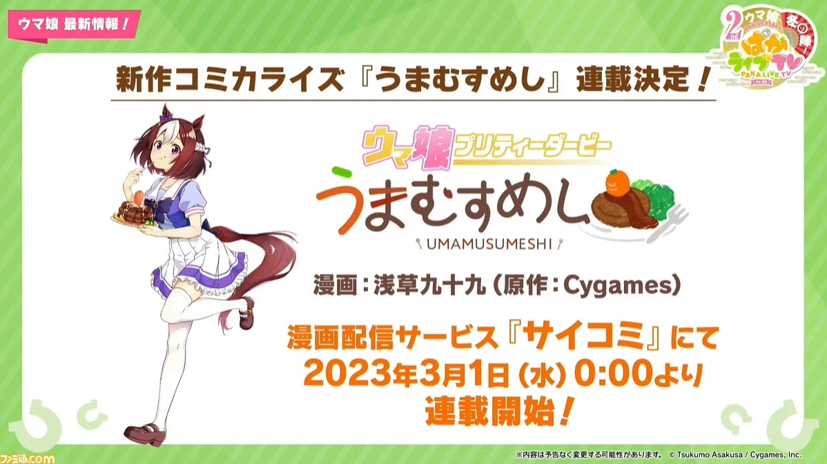 『ウマ娘 プリティーダービー』(『ウマ娘』)の公式生配信番組“ぱかライブTV Vol.26 2周年記念 ウマ娘冬の陣!”が、2023年2月22日(水)20時00分より放送。