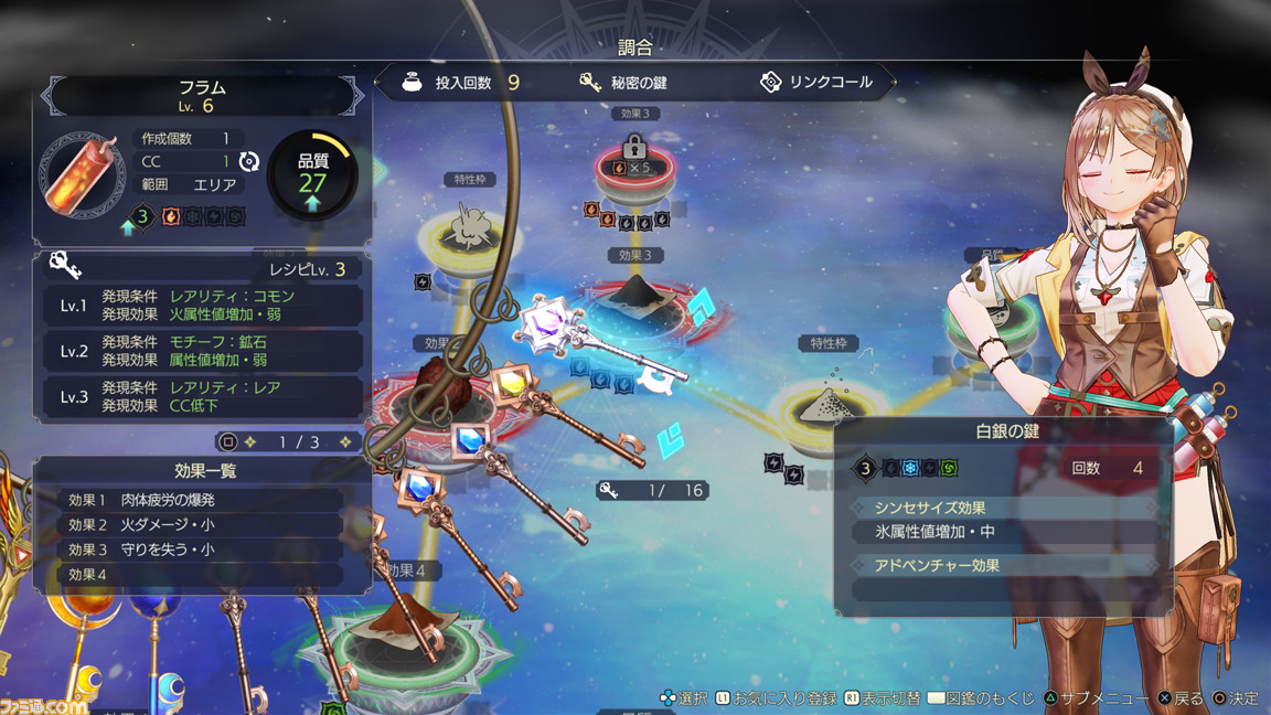 他にも、探索・調合・戦闘など様々なシーンで活躍する新システム「鍵」や、爽快感のあるリアルタイムタクティクスバトル、マスに材料を入れていく分かりやすい調合など、冒険をさらに深く楽しめる様々なシステムが充実しています。