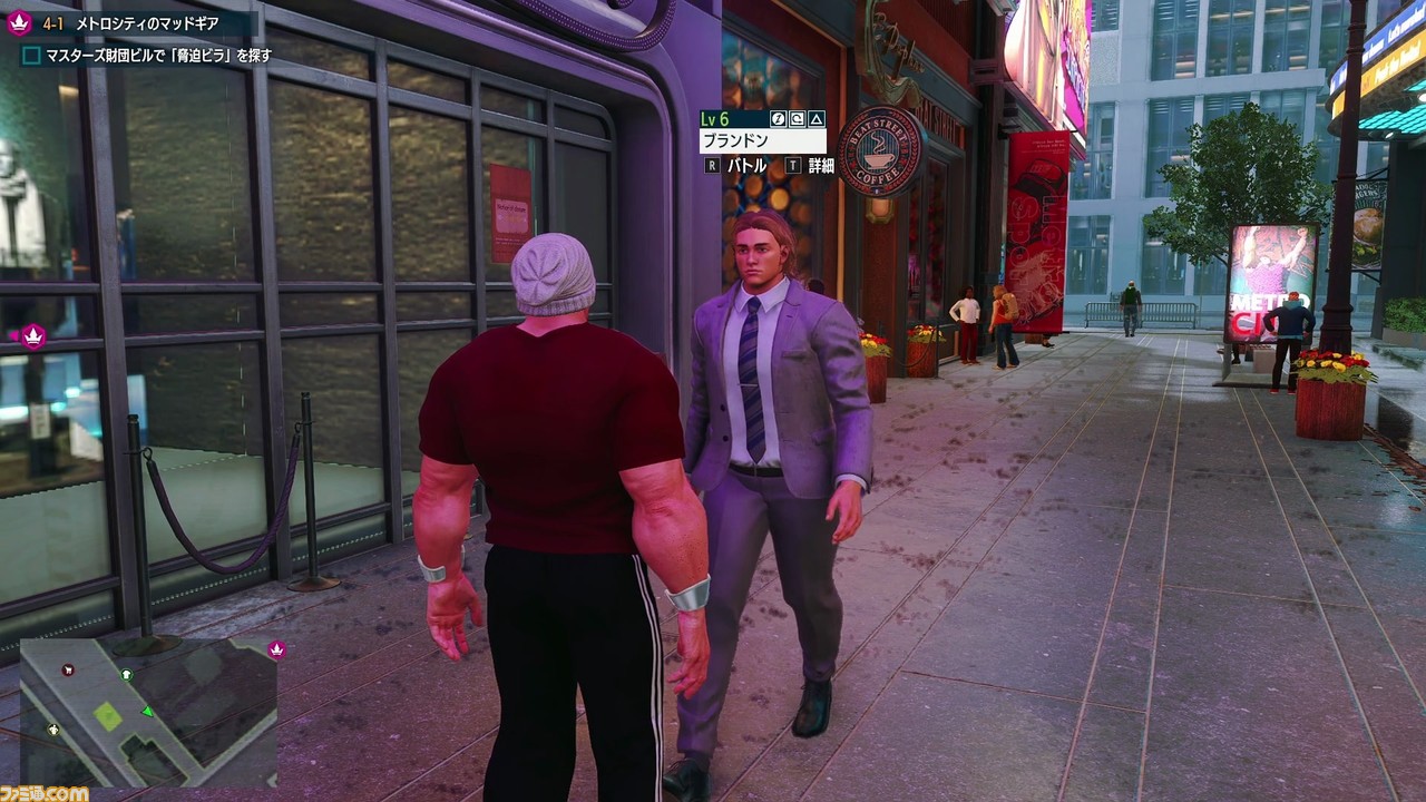 また散策の際に必ず行っておきたいのが、“ファストトラベルポイント”の解放だ。序盤ではビートスクエアを出てすぐの道路脇のほか、ルークがいるMCトレーニングセンターのすぐ目の前にもある。これらはバス停のようなオブジェクトに一度アクセスすることで使用できるようになり、メトロシティのどこにいてもシティマップから移動先を指定することで、一気に移動できるようになる。