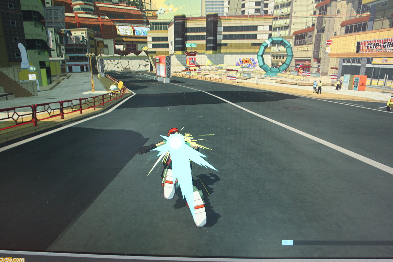 ブースでは15分という制限時間を設けた形でゲームを遊ぶことができ、ゲーム冒頭のムービーシーンも観ることができた。頭と記憶を失い、ロボット頭となってしまったグラフィティライターの主人公“Red”が、元の頭を取り戻すべく仲間とともに手がかりを探しにいくというストーリーが展開されていた。